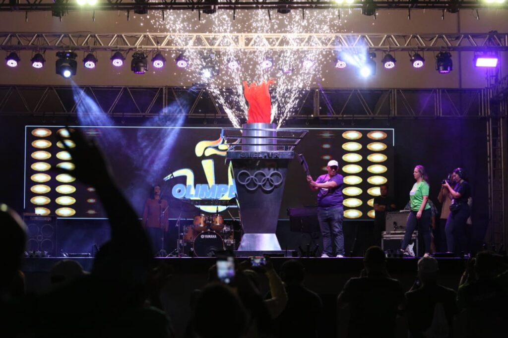 A Banda Êxtase, que fez um esquenta antes da solenidade oficial de abertura da Olimpede 2025, também assumiu o palco do Ginásio da PET depois do acendimento da Pira Olímpica. E os atletas desceram das arquibancadas para comemorarem juntos o início dos jogos.