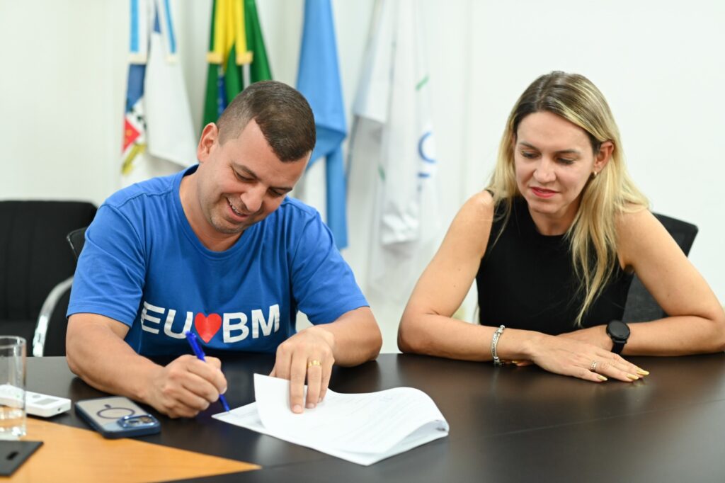 Participaram do encontro o secretário de Esporte, Mário Jorge Ferreira; a diretora pedagógica do Colégio Verbo Divino, Flávia Real, que também é ciclista e representa o município em competições nacionais; e o diretor administrativo, Fernando Chaves.