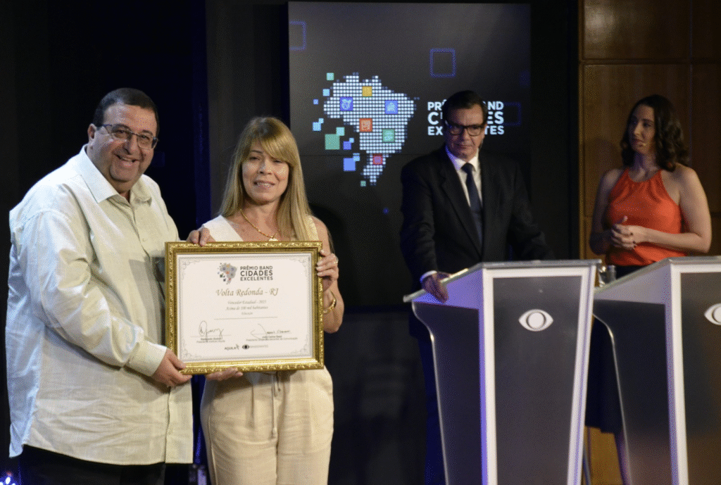 A educação pública municipal de Volta Redonda conquistou nesta terça-feira (7) a etapa estadual do Prêmio Band Cidades Excelentes 2025 – iniciativa do Grupo Bandeirantes de Comunicação em parceria com o Instituto Aquilla, que visa incentivar, reconhecer e valorizar boas práticas de gestão pública para transformar a realidade dos municípios brasileiros e melhorar os serviços públicos prestados aos cidadãos. Com a conquista no pilar Educação para cidades acima de 100 mil habitantes, Volta Redonda participou da premiação na Fecomércio (Federação do Comércio de Bens, Serviços e Turismo do Estado do Rio de Janeiro), na capital fluminense, com a presença do deputado estadual Munir Neto, representando o prefeito Antonio Francisco Neto.