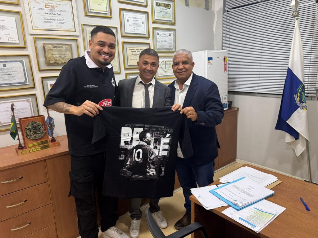 Durante o encontro, Gabriel Arantes entregou ao presidente da Câmara, vereador Edson Quinto, uma camisa comemorativa em homenagem ao legado do Rei Pelé. O gesto simbolizou a importância histórica do maior jogador de futebol de todos os tempos e reforçou os laços de Volta Redonda com o mundo do esporte.